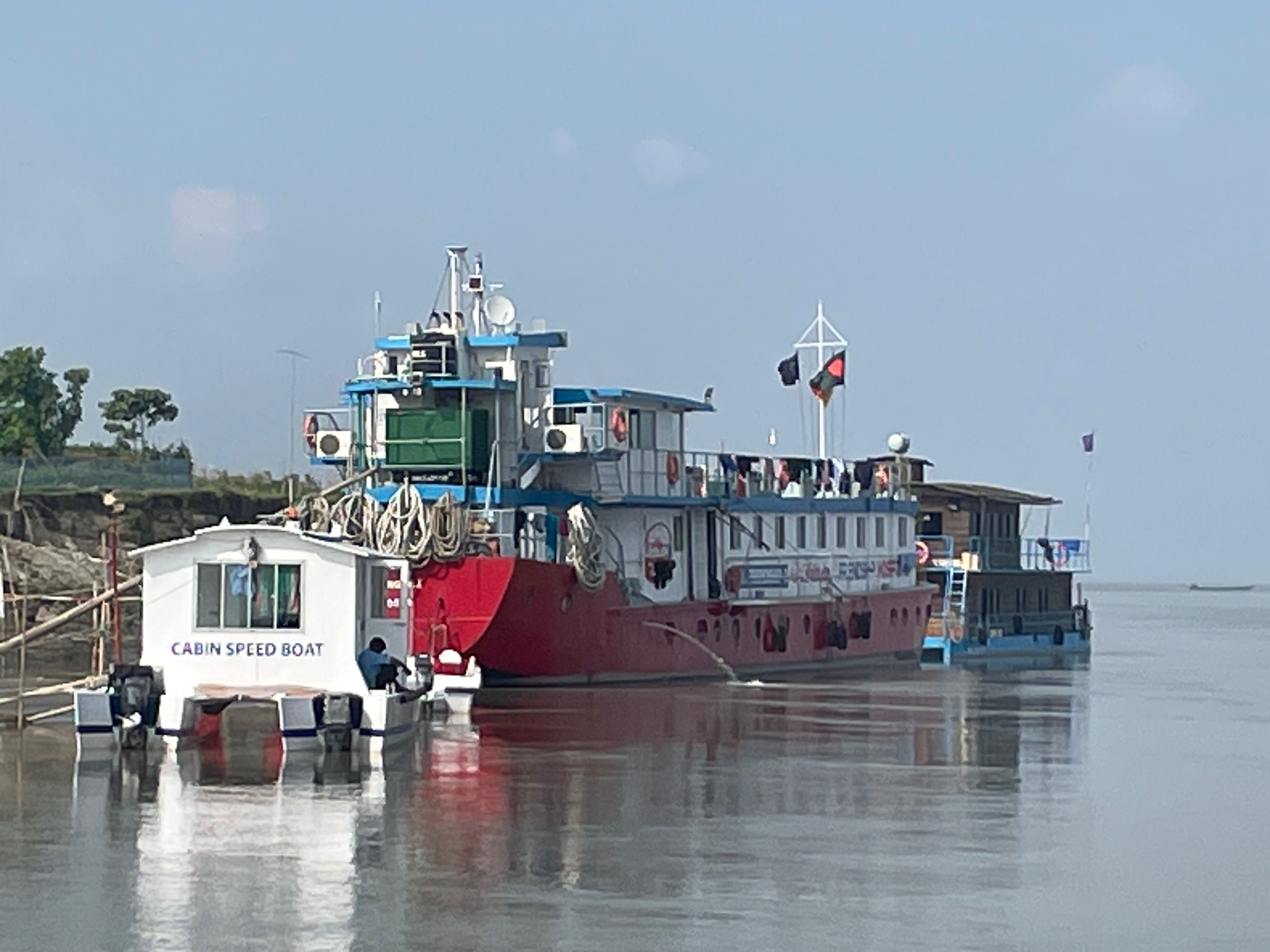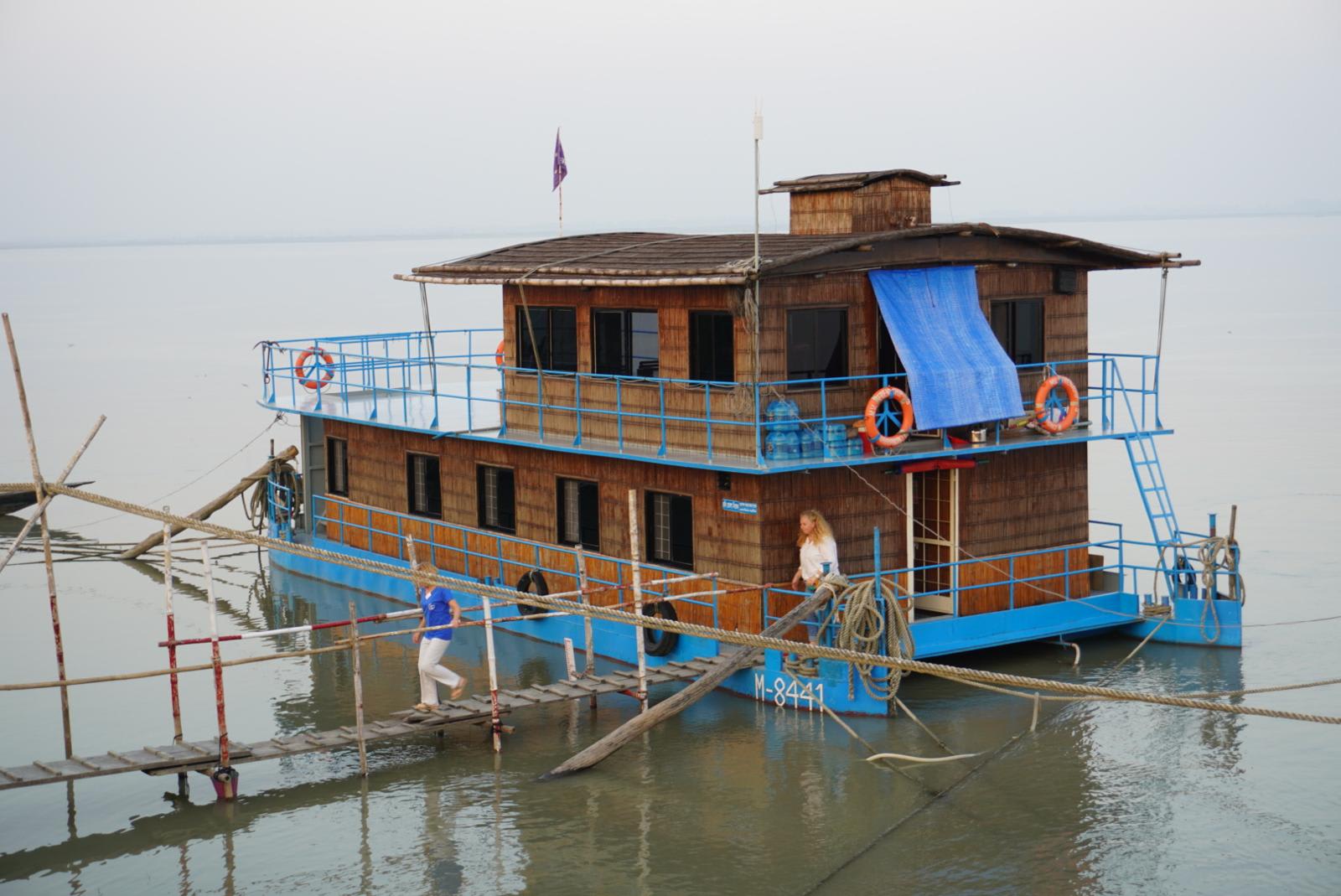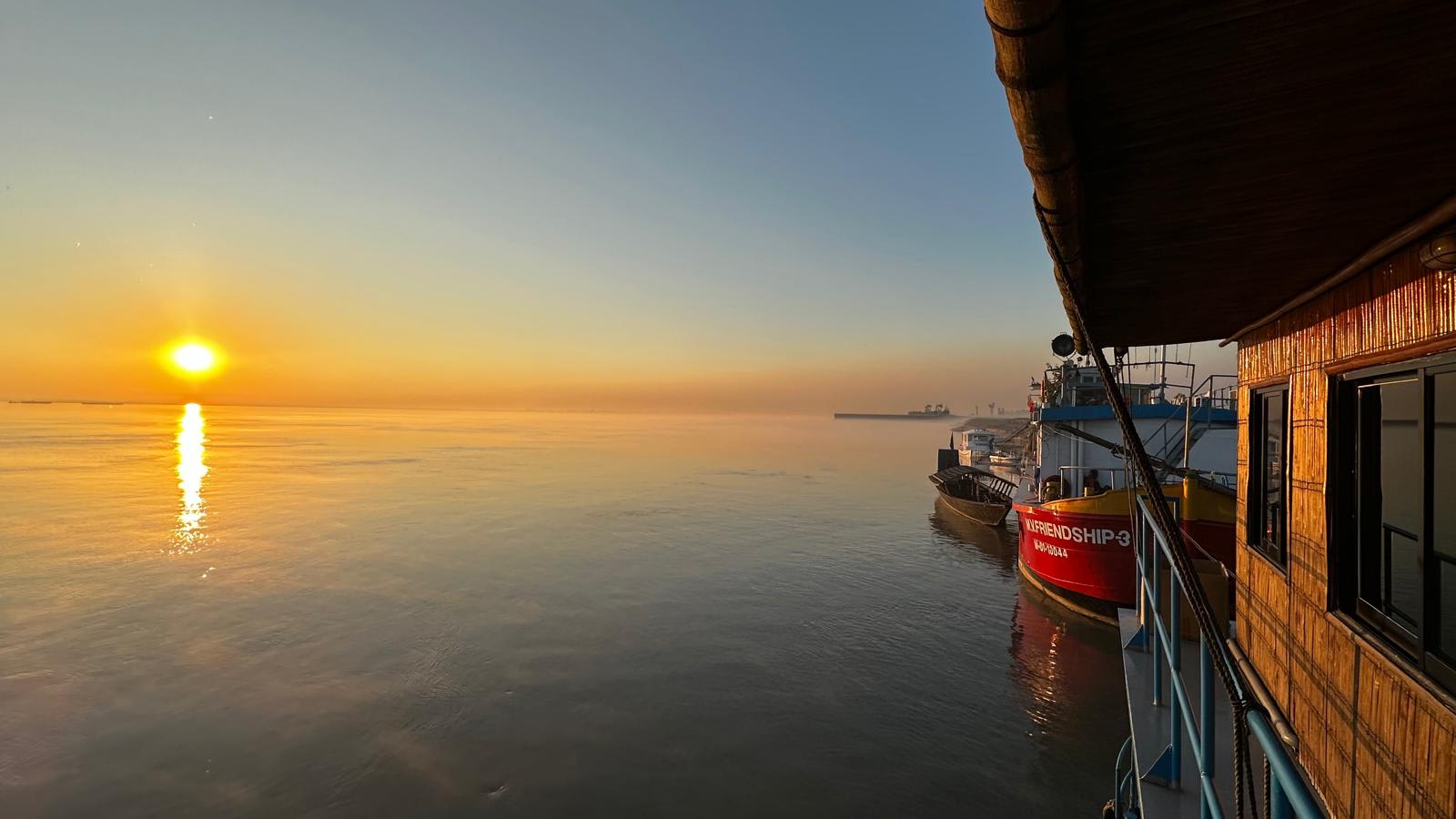 Das Schiff ist stationiert am Brahmaputra River, rund 40 km nördlich von Sirajganj, nahe der Ortschaft Sariakandi im Verwaltungsbezirk Kazipur (District Sirajganj, Division Rajshahi). Die Anreise erfolgte nach der Landung in Dhaka (10. November) über eine fünfstündige Fahrt durch Tangail und Bogra bis zum Ufer bei Meghai Ghat, von wo aus das Team eine knappe Stunde mit einem traditionellen Holzkahn flussaufwärts zum Schiff ruderte.